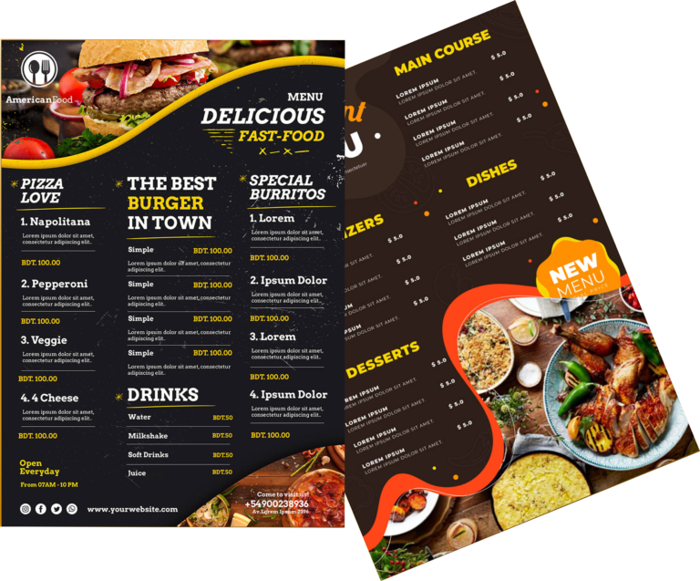 Impresso em papel couchê 90gr impressão frente e verso plastificado.