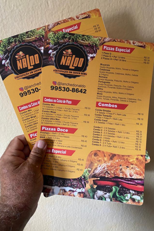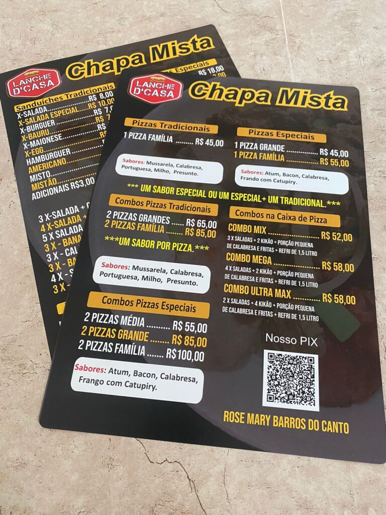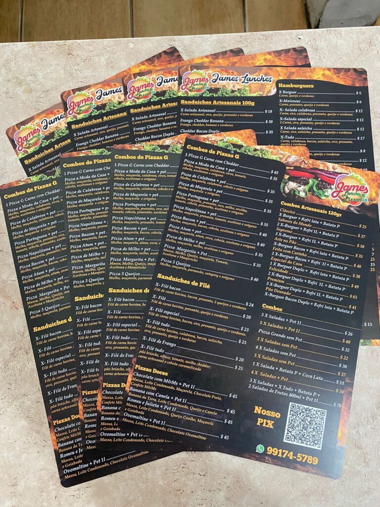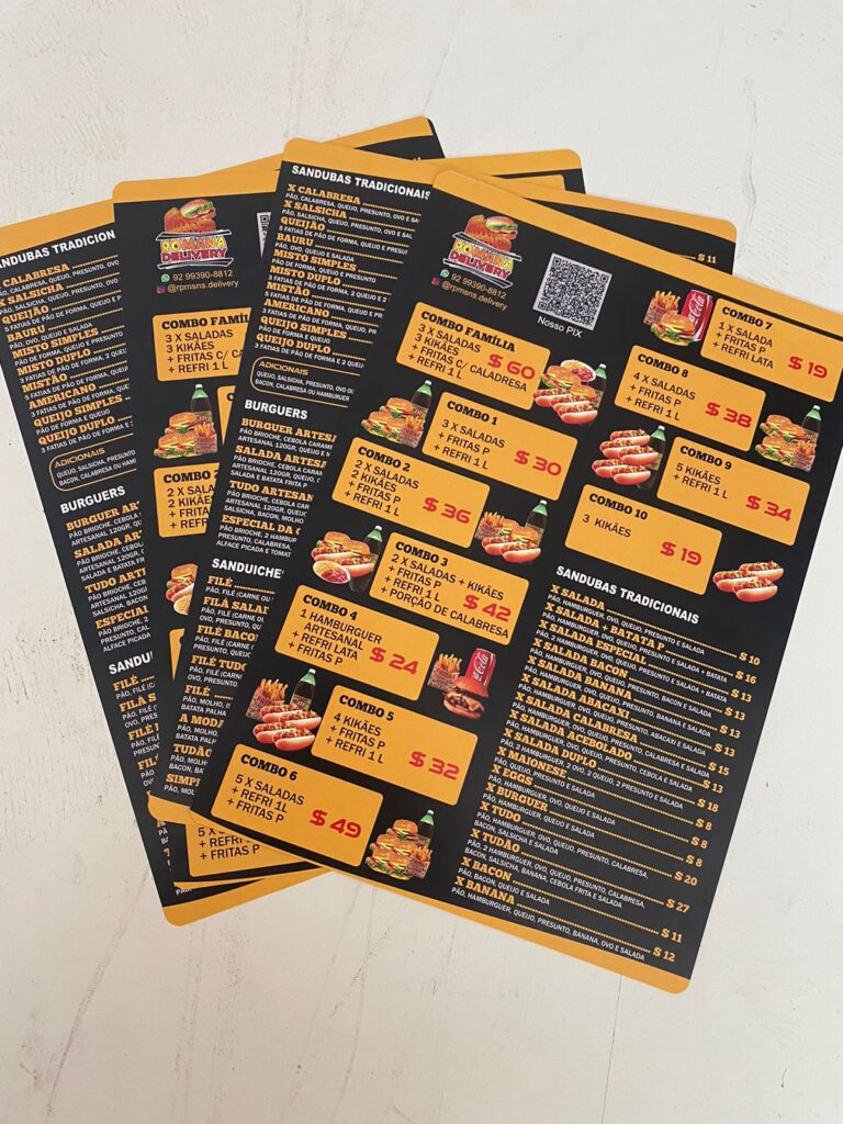 Cardápio em PVC